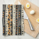 Warm geometric stripe pattern kitchen towel featuring tribal-inspired diamonds, zigzags, and textured vertical bands in earthy brown, terracotta, tan, beige, and charcoal tones. A cozy boho design ideal for southwestern décor lovers, rustic style fans, and anyone drawn to earthy, handcrafted aesthetics.