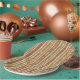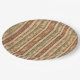 Warm geometric stripe pattern paper plate featuring tribal-inspired diamonds, zigzags, and textured vertical bands in earthy brown, terracotta, tan, beige, and charcoal tones. A cozy boho design ideal for southwestern décor lovers, rustic style fans, and anyone drawn to earthy, handcrafted aesthetics.