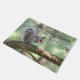 This doormat features a squirrel eating his lunch high up in a pine tree in Connecticut.