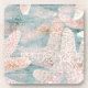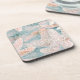 A beach themed cork coasters featuring a starfish pattern with rustic teal blue wood styling.