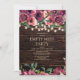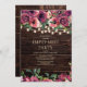 Empty Nest party invitation with a rustic dark brown barn wood background and twinkling string lights with pink and purple watercolor floral. Contact us for help with customization or matching products.