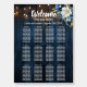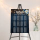 An elegant Wedding design with elegant calligraphy completed by wonderful blue wood, garden string lights and white blue floral with gold glitter that can be personalized with your Wedding Guest Names. This Board is for 12 Table Guests.