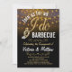 Rustic I do BBQ barbecue engagement party invitations with pretty gold script and wedding rings on a glowing string light background. This rustic I do barbecue invitation is easily customized for your event by simply adding your details. You can also change the background color.