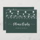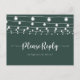 This rustic string lights green menu choice rsvp postcard is perfect for a classic wedding. The design features beautiful hand-painted string lights in a green background.