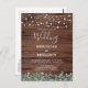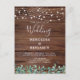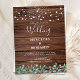 Invite friends and family to your wedding with these elegant yet rustic wood with string lights and eucalyptus greenery wedding invitation cards. These unique rustic county wedding invitations feature elegant white string lights on barn wood with with botanical greenery design with with botanical greenery design with wedding website qr code for easy RSVP's... Personalize these rustic wedding invitations with names, wedding date, and location. See our wedding collection for unique wedding invitations, wedding photo albums, guest books, party gifts, and more! COPYRIGHT © 2020 Judy Burrows, Black Dog Art - All Rights Reserved. Rustic String Lights Greenery QR Code Wood Wedding Invitation Postcard