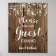 Rustic string lights guest canvas wedding sign