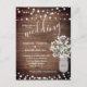 This affordable wedding design features dainty watercolor baby's breath flowers in a mason jar vase on a rustic wood background with string lights. Click the customize button for more flexibility in modifying the text. Variations of this design, different paper types, as well as coordinating products are available in our shop, zazzle.com/store/doodlelulu. Contact us if you need this design applied to a specific product to create your own unique matching item! Thank you so much for viewing a DoodleLulu by 2 june bugs design!
