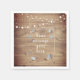 A rustic country paper napkin featuring string lights above a vintage mason jar filled with your personalized message and scattered delicate wildflowers on a natural weathered wood panel background. Perfect for weddings, bridal showers, baby showers, baptisms, engagement parties, anniversary celebrations, graduations, birthday get-togethers, and other special events throughout the year! Designed by Thisisnotme©