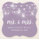 Affordable custom printed coasters for your wedding or any event. The design features rustic glowing string lights and mason jars hanging across the top with a mix of modern and calligraphy script fonts on a dusty lilac purple background. Personalize it with your Mr. and Mrs. monogram and wedding date or other custom text. Use the design tools to choose any background color, edit the text fonts and colors or upload your own photos.