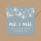 Custom printed stickers personalized with your Mr. and Mrs. monogram and wedding date, perfect for wedding favor labels, welcome bags or envelope seals with your invitations. The design features glowing string lights and mason jars on a dusty blue background. Use the design tools to choose any background color, change the text fonts and colors or upload your own photos to create a unique one of a kind design.
