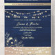 Rustic String Lights Navy and Gold Wedding All In One Invitation