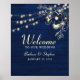 Rustic String Lights Navy Blue Wedding Welcome Poster