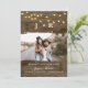 Set the tone for your big day with this rustic photo save the date card featuring your monogram, glowing string lights, and a barn wood texture with a brushstroke-style photo frame. Perfect for country, farmhouse, or outdoor weddings, this personalized card highlights your favorite engagement photo while keeping it beautifully down-to-earth and romantic.
