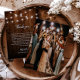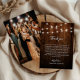 This rustic wedding thank you card features a warm and inviting design with a dark wood background and softly glowing string lights, creating a cozy and elegant aesthetic. The combination of script and serif fonts adds a touch of charm and sophistication, making it perfect for country, barn, or outdoor weddings. The heartfelt message expresses gratitude for the love, support, and gifts from family and friends, making it a meaningful keepsake. The back of the card beautifully showcases a romantic wedding photo, capturing the joy and magic of the celebration. Ideal for couples looking for a personalized and stylish way to thank their guests, this card exudes warmth, love, and timeless elegance.