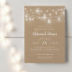 Plain white envelopes are included with paper invitations and will come to fit the invitation size you select. If you don’t need the envelopes, you may choose to not receive them by selecting the dropdown below "Envelopes" and choosing "None." If you’d like to have a design on your envelopes, you can browse all of these available envelopes to find the design that complements your Rustic String Lights Rehearsal Dinner Invitation.