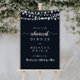 This rustic string lights rehearsal dinner welcome sign is perfect for a simple wedding rehearsal. The design features beautiful hand-painted string lights in a dark blue background.