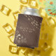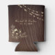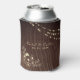 Rustic wedding can cooler with faux wood grain, elegant gold floral line art, and glowing string lights. Personalized with couple’s names and wedding date. Perfect keepsake or party favor for receptions or welcome parties.