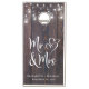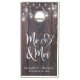 A fun cornhole game set for your wedding events and newlywed life. This rustic design features a dark faux wood background with glowing string lights and mason jars, "Mr & Mrs" written in a large white script and a white illustration of two hearts joined together. Personalize with your first names and wedding date in simple modern white typography, and select your bean bag colors.