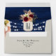 Elevate your wedding stationery with this rustic floral envelope featuring glowing faux string lights, a navy wood texture, and burgundy boho blooms. Personalize it with your names and return address for a stylish country or barn wedding vibe. Matching items available in the full suite. For custom edits, email bpkolman@gmail.com.