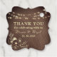 Thank your guests with this elegant rustic favor tag featuring wood grain texture, glowing string lights, and gold floral accents. Personalized with names and date—perfect for tying to gifts, bags, or party favors for fall or boho weddings.