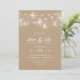 We have hundreds if not thousands of different invitation designs like Rustic Wedding Invitations and String Lights Wedding Invitations. However, if none of these designs match your needs you can customize any existing design or make your own from scratch so that you can set the stage for a memorable celebration.