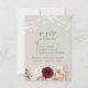 Elegant, boho, rustic floral wedding RSVP card with beautiful watercolor burgundy flowers, string lights and modern calligraphy script.