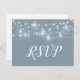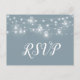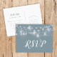 Affordable custom printed wedding RSVP postcards with an easy to use template for customization. This rustic chic design features strands of glowing string lights and mason jars on a dusty blue background. Personalize the template with your wedding reply details - including meal options if needed - or customize the text to use for any event. Use the design tools to choose any background color, add photos and customize the text fonts and colors to make a unique design for your wedding.