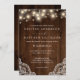 Rustic String Lights Wood Lace Detail Wedding Invitation