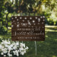 Rustic String Lights Wood Wedding Announcement Yard Sign to announce your wedding in style! Rustic wood siding and string lights set off space for your custom text. Great for wedding receptions and engagements! Easy to customize with text, fonts, and colors. Created by Zazzle pro designer BK Thompson © exclusively for Cedar and String; please contact us at cedarandstring@gmail.com if you need assistance, have questions, or would like to inquire about custom work.