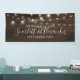 Rustic String Lights Wood Wedding Banner to announce your wedding in style! Rustic wood siding and string lights set off space for your custom text. Great for wedding receptions and engagements! Easy to customize with text, fonts, and colors. Created by Zazzle pro designer BK Thompson © exclusively for Cedar and String; please contact us if you need assistance, have questions, or would like to inquire about custom work.