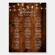 This rustic wedding seating chart features a warm wood background with softly glowing string lights, creating an inviting and elegant ambiance. The stylish mix of script and sans-serif typography enhances the timeless charm while ensuring readability. Perfect for barn, country, or outdoor weddings, this design adds a touch of rustic sophistication to the reception entrance, guiding guests effortlessly to their assigned tables. The cozy yet refined aesthetic makes it a seamless addition to any rustic wedding decor, helping to create a well-organized and visually cohesive celebration.