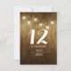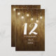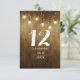 Rustic String Of Lights Country Table Number Card. A beautiful country barn wood design with sparkling lights. Simply add your custom details to the front and back of the card via the easy 'Personalize This Template' option. There are a choice of sizes, shapes and paper types to suit the design.