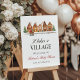 Invite your loved ones to a cozy winter celebration with this It Takes a Village baby shower Welcome Sign. Featuring a charming gingerbread houses scene and a baby troller, this rustic design captures the spirit of family, friends, and togetherness during the winter season.