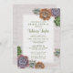Plain white envelopes are included with paper invitations and will come to fit the invitation size you select. If you don’t need the envelopes, you may choose to not receive them by selecting the dropdown below "Envelopes" and choosing "None." If you’d like to have a design on your envelopes, you can browse all of these available envelopes to find the design that complements your Rustic Succulents Bridal Shower Invitation.