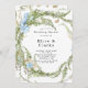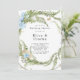 Design features a printed colored floral element in shades of green and dusty blue watercolor florals wreath with baby blue butterflies on a canvas background. Calligraphy or type writing with the design artwork. Mix and match collection piece. Great for your wedding celebrations!