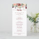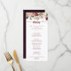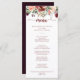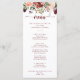 This rustic summer floral calligraphy dinner menu card is perfect for a simple wedding. The design features burgundy, pink and blush watercolor flowers with green leaves in a brownish stained background.