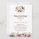 This rustic summer floral housewarming party invitation is perfect for a simple new house celebration. The design features burgundy, pink and blush watercolor flowers with green leaves in a brownish stained background.