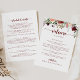 This rustic summer floral wedding welcome letter is perfect for a modern wedding. The design features burgundy, pink and blush watercolor flowers with green leaves in a brownish stained background.