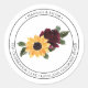 This rustic sunflower and roses wedding circle return address label is the perfect complement to your sunflower wedding invitations, save the dates or bridal shower invitations. It features pretty watercolor sunflowers and burgundy roses with sage greenery. Personalize with your name and address.
