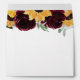 This Rustic Sunflower Country Wedding return address envelope is the perfect compliment for to the rustic sunflower and roses wedding invitations. The envelope features watercolor floral sunflowers and burgundy roses with sage greenery. Personalize with your return address on the flap back.