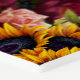 Personalized rustic country farmhouse wedding foam board corner welcome sign featuring beautiful yellow gold sunflowers and burgundy roses bouquets with natural green foliage over a dark brown barn wood background. ++++++++++++++ Easy to customize with the bride and groom names, date and place. +++++++++++++ Suitable for summer or autumn fall outdoor garden or backyard wedding ceremonies and receptions.