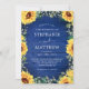 Rustic Sunflower Babys Breath Border Blue Wedding Invitation
