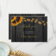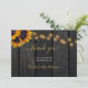 Rustic sunflowers bouquet and string lights on dark brown barn wood elegant bridal shower thank you card with a trendy chic gold white trendy script. +++++++++ Personalize with your text and signature! ++++++++++ Suitable for floral spring summer or autumn fall outdoor garden backyard rustic country or farmhouse barn themed bridal parties or weddings.