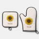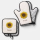 Rustic Sunflower Boho Botanical Personalized Oven Mitt & Pot Holder Set