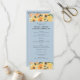 Elements: Lovely portrait of sunflowers in a rustic vase. Your names and details appear in a fun, slightly distressed font. Colors: Yellow, black, brown, orange, green, blue, violet. Themes: rustic, country, barn, romantic, garden, cottage, bright, sunny. Collection: Rustic Sunflower Bouquet Watercolor Wedding Collection. Product Type: Program