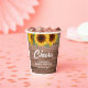 Rustic Sunflower design. This Bridal shower round PAPER Cups template combines two size of font for more dynamic look.