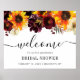 Rustic Modern Sunflower Burgundy Rose Fall Autumn Floral Watercolor Bridal Shower Welcome Sign
