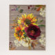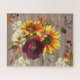 Rustic Sunflower Burgundy Red White Floral Jigsaw Puzzle