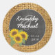 The sticker is made on wonderful paper and had no problem sticking to the bag that I purchased to put it on. I wanted to find a design that would be cute for the bride and groom and this one fit the bill as it has cute "bees" buzzing around and the wedding was taking place in a town called "Bee Cave". The packaging was great and protected the stickers. The website is easy to navigate and there are so many color choices. I had no problem finding a color that the bride was using on everything else selected. The design was adorable and there were many to choose from. You can make the figure as larger or smaller and you can place the photo and writting whereever you want to in the sticker. The printing is fabulous..better than expected.