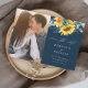 A rustic fall floral photo wedding save the date invitation with watercolor sunflower and eucalyptus bouquet. Click the edit button to customize this design.